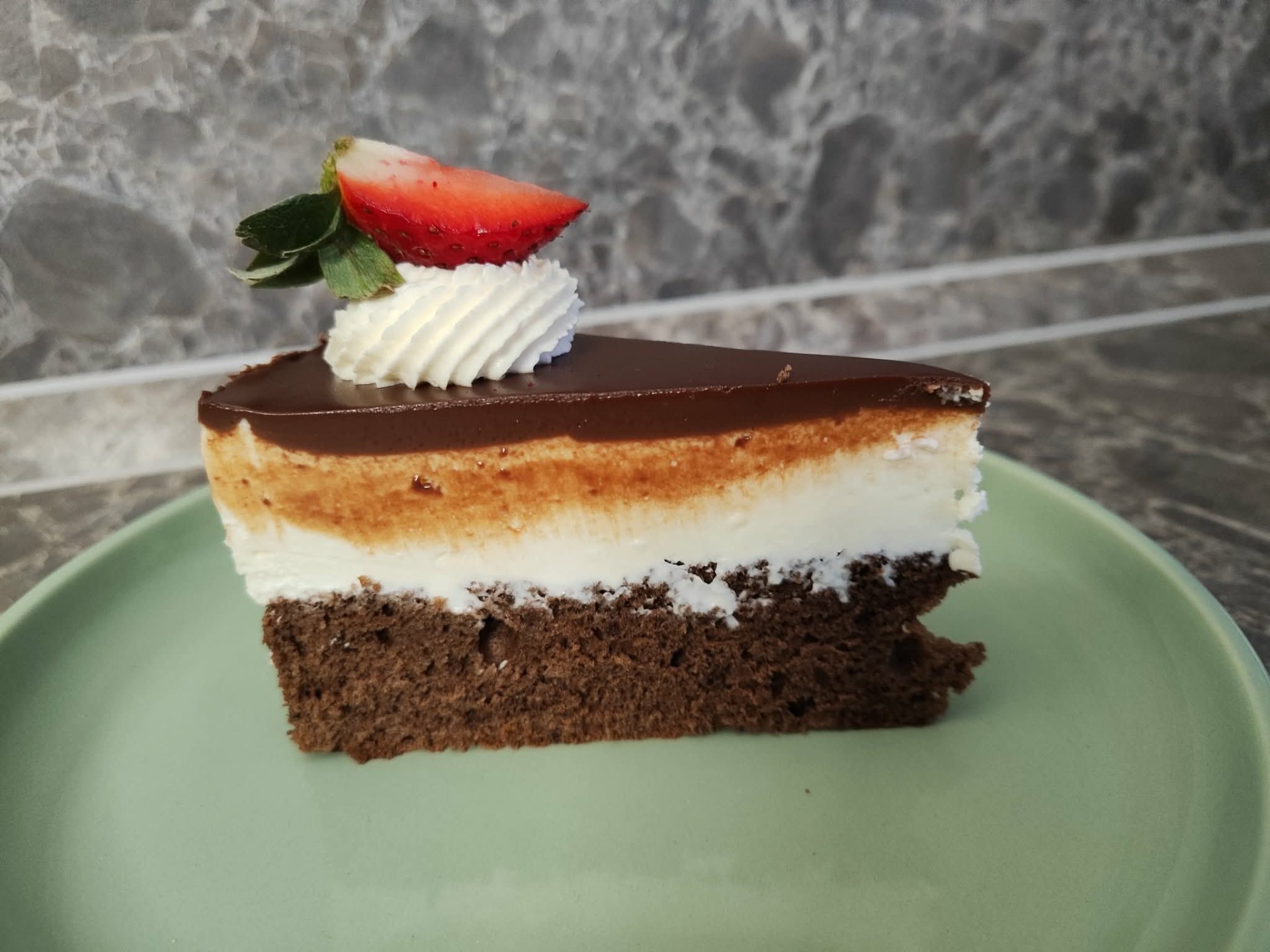 Oblíbená klasika v dortovém provedení, která potěší každého milovníka poctivých tvarohových dezertů. Vláčný kakaový korpus tvoří základ pro vysokou vrstvu jemného krému z mascarpone, tvarohu a smetany s plnou, svěží chutí. Povrch dortu je zakončený hladkou čokoládovou polevou, která dodává dezertu příjemný kontrast a intenzivnější kakaový tón.